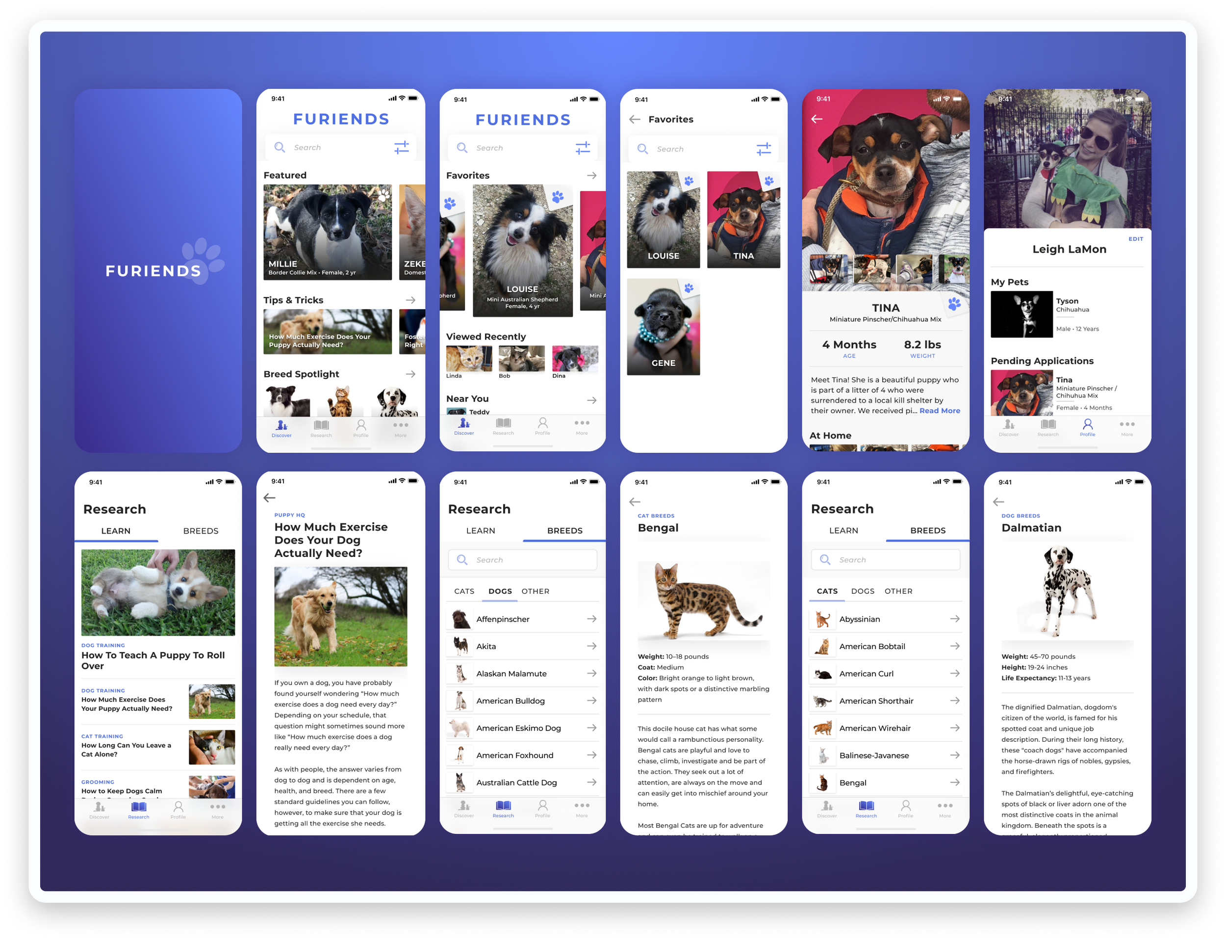 Concept project for pet care & adoptions. The idea was to create a one-stop shop for pet care: research breeds, find your perfect match, and submit an application. Then once he’s yours, learn how to train, how to best care for his breed, and make sure he’s up-to-date on all his shots!